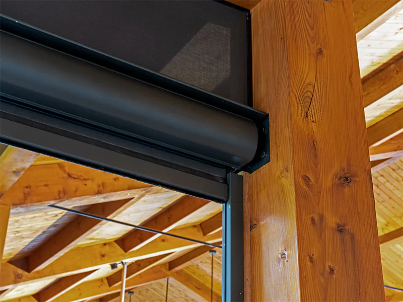 For the all-important visual properties, Draper chose a dark fabric with a 3% openness factor. The color and openness combine to provide protection from the elements while preserving views of the park setting and fitting in with the design aesthetic of the venues.