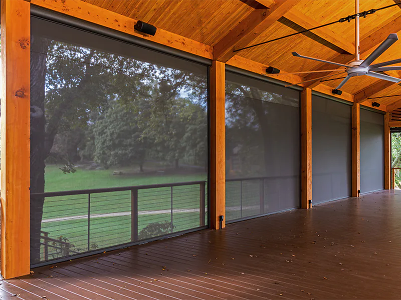 “When you have a lot of people and objects in close proximity to the edge of a deck area, there is sometimes a concern that a shade will deploy and either cause an injury or be damaged,” said Childress. “We avoid that possibility by using radio-controlled obstruction detection motors. If a person or object is in the way of a descending shade, the unit senses the obstruction and reverses course.”