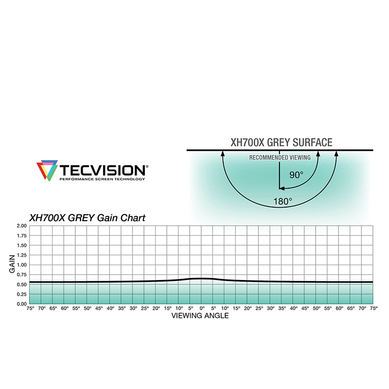 TecVision’s carefully formulated surfaces offer unparalleled performance with individual features that set them apart. Each surface has lower gloss levels and more consistency for better brightness uniformity. The TecVision family offers four ambient light rejecting (ALR) surfaces for optimal image contrast and saturation in spaces with lighting. All gained white surfaces have extremely wide off-axis performance, which provides a huge savings when compared to the cost of purchasing a brighter projector. Each surface has black backing to prevent picture degradation caused from light behind the screen and are available in sizes up to 23’ x 69’ (7 m x 21m). There is a surface to meet the needs of every application within the TecVision family.