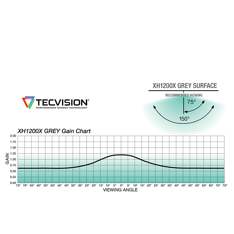 TecVision’s carefully formulated surfaces offer unparalleled performance with individual features that set them apart. Each surface has lower gloss levels and more consistency for better brightness uniformity. The TecVision family offers four ambient light rejecting (ALR) surfaces for optimal image contrast and saturation in spaces with lighting. All gained white surfaces have extremely wide off-axis performance, which provides a huge savings when compared to the cost of purchasing a brighter projector. Each surface has black backing to prevent picture degradation caused from light behind the screen and are available in sizes up to 23’ x 69’ (7 m x 21m). There is a surface to meet the needs of every application within the TecVision family.