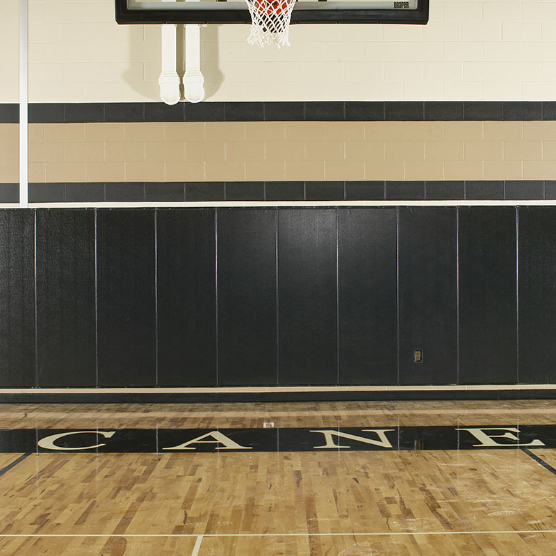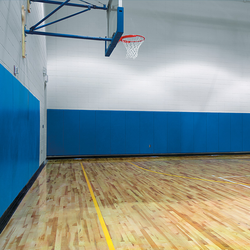 EcoVision Wall Pad offers high-quality gym wall pads for basketball courts, gymnastics areas, wrestling rooms, rehabilitation centers, and more. These pads feature a one-piece construction, wrapped in vinyl-coated polyester with a leather-like embossed pattern. They can cover corners, columns, doors, stages, and beams with various attachment methods, providing maximum impact protection for activity areas. Draper wall pads meet the strictest off-gassing standards contributing to a safer, healthier indoor environment for school age children.