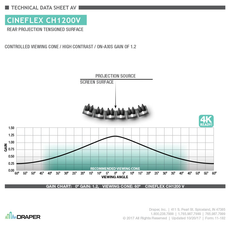 The CineFlex family features premium rear projection viewing surfaces with the flexibility of choice of gain and color to meet a wide range of rear projection needs. CineFlex surfaces are available on a wide range of fixed frame screens, portable, and tab-tensioned projection screen models.