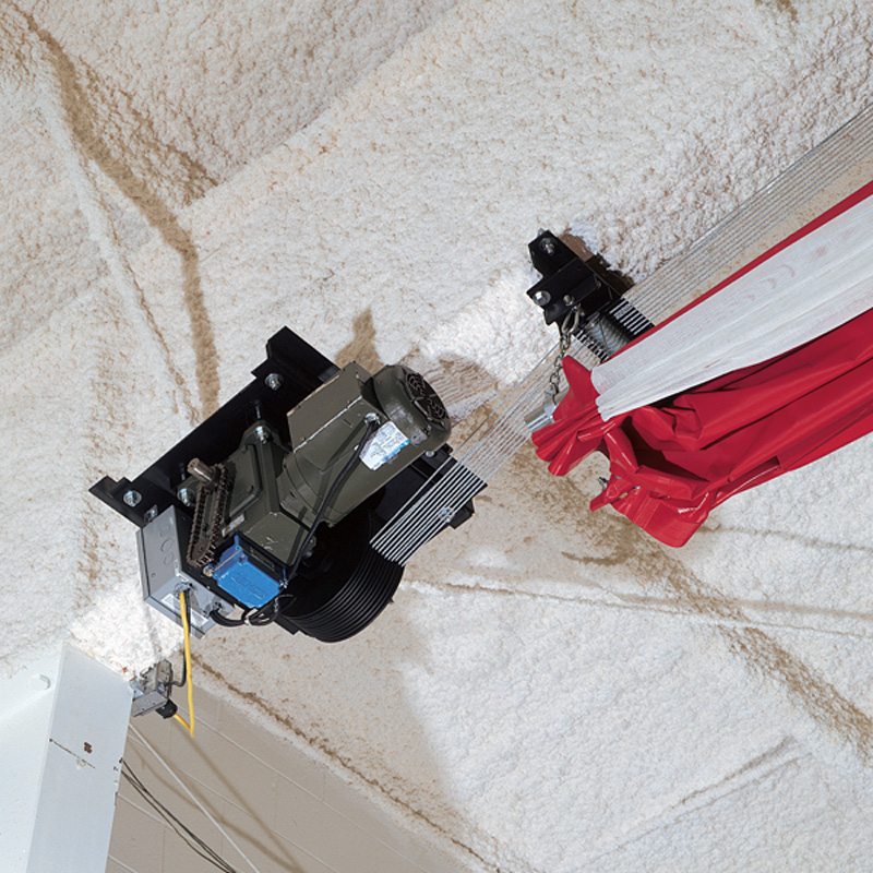 Curtain maximizes space with a custom-engineered design that folds compactly to match roof slopes. Lift cables are used for smooth accordion folding.