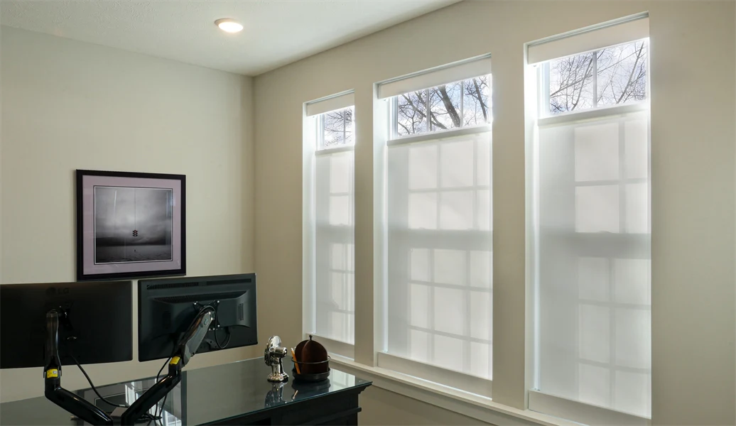 Bottom-Up FlexShade NEXD window shades with Phifer SheerWeave 2400 3% Oyster fabric installed a private residence in Indianapolis, IN