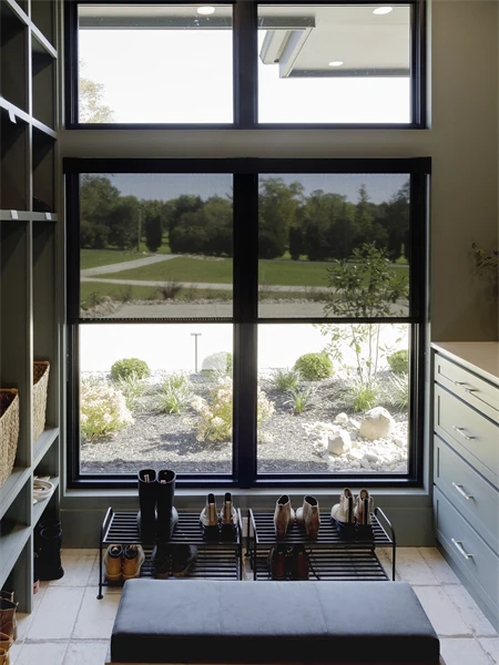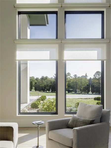 FlexShade Manual Window Shades installed with Mermet E-Screen 3% Charcoal Fabric