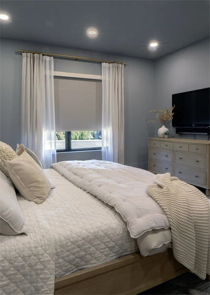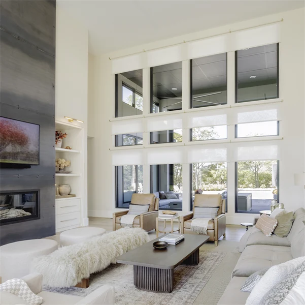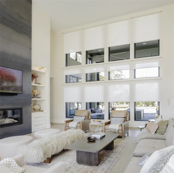 FlexStyle Battery Zigbee Motorized Window Shades installed with Phifer SheerWeave® 7850 Light Filtering Almond Fabric