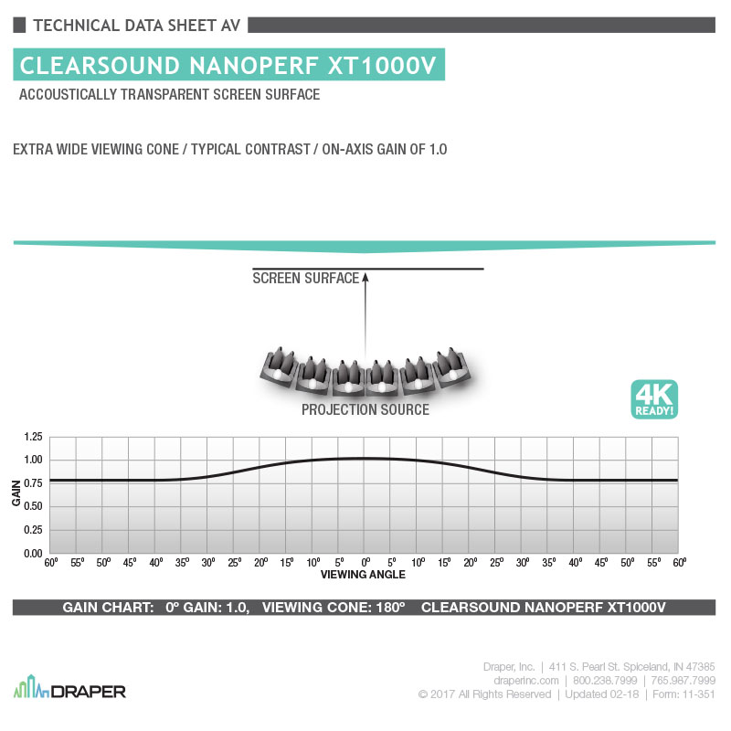 that almost any Draper projection screen model can be provided with a ClearSound viewing