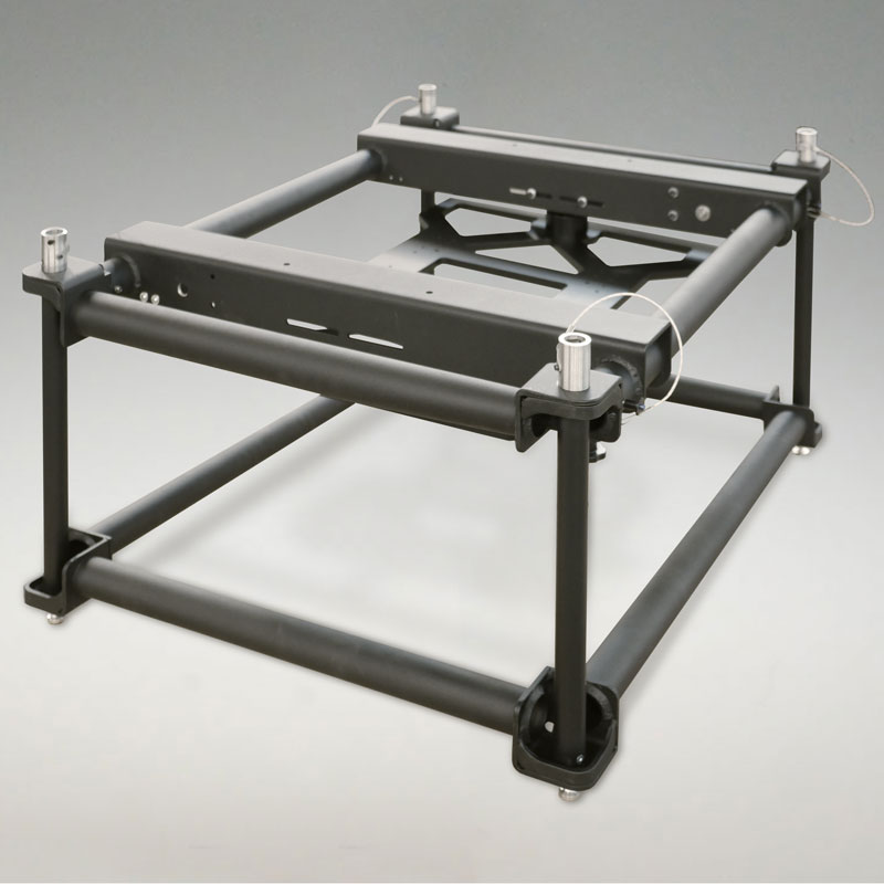 Draper Fly Cages offer strong, reliable mounting and stacking for projectors. Made from 2-inch (5 cm) tubing, they easily attach to Cheeseborough clamps for quick, secure truss mounting. Multiple cages can be stacked for enhanced brightness or redundancy, with an adjustable mechanism for precise projector alignment. The three-axis adjustment mechanism (roll, tilt, yaw) aids in precise image alignment. Available in five standard sizes to fit most projectors, with custom sizes available for any projector.