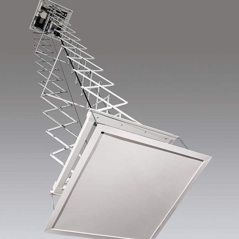 Scissor Lift SLX supports larger, brighter video projectors up to 12 amps with ease, offering six models with various lifting capacities. Three sets of scissors ensure lateral and front-to-back projector stability. The extended lift positions streamline projector maintenance during shows and service intervals. Easily set two customizable show positions while still allowing full up and down positions for storage or maintenance. The system retains presets even during power loss. Power projectors seamlessly with a UL-listed receptacle outlet, available in 115V or 240V. Scissor Lift SLX delivers reliable, high-performance support for professional AV installations.